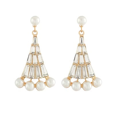 Pearl Trim Rhinestone Earrings-Gold
