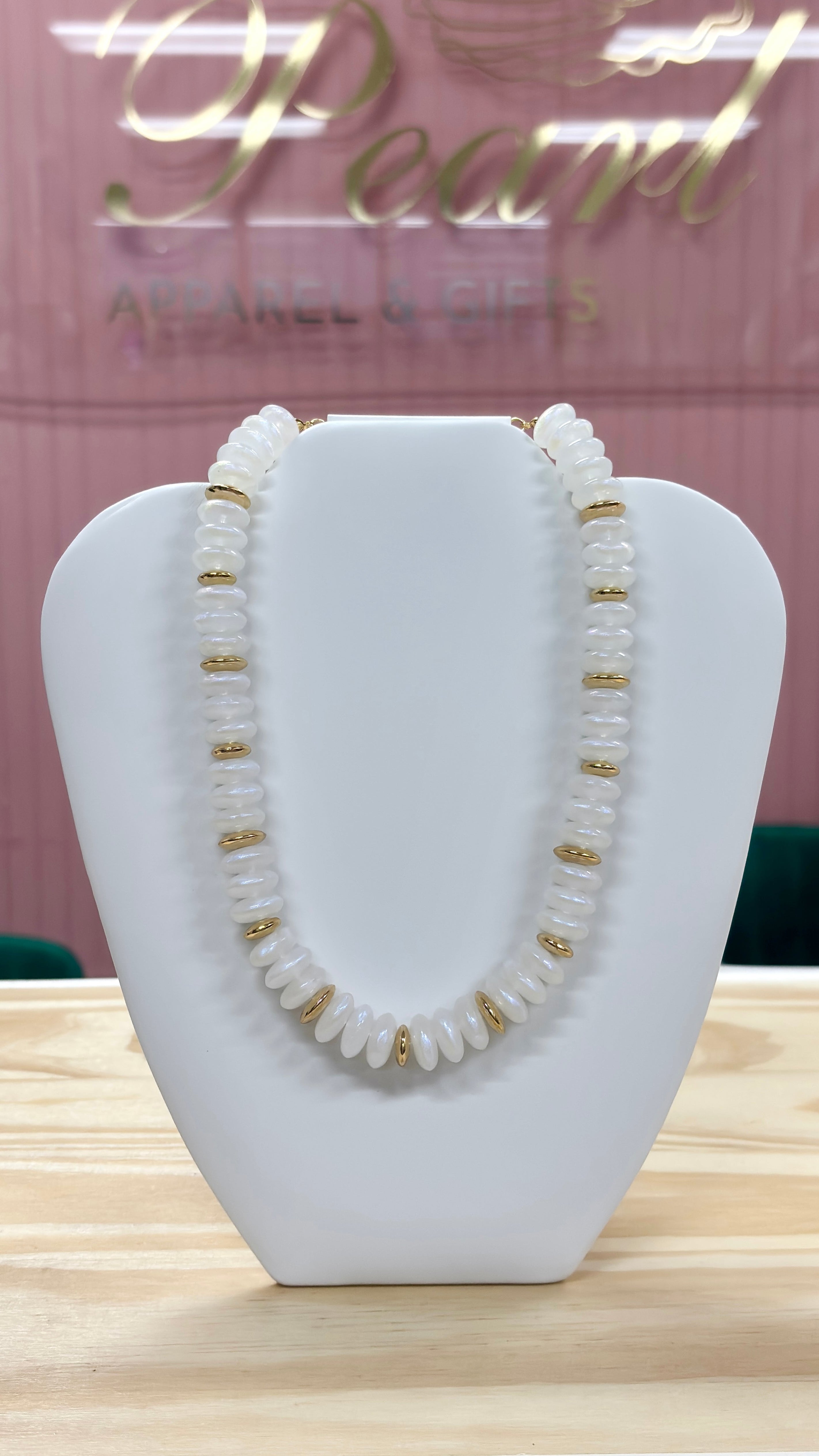 White Iridescent Beaded Necklace