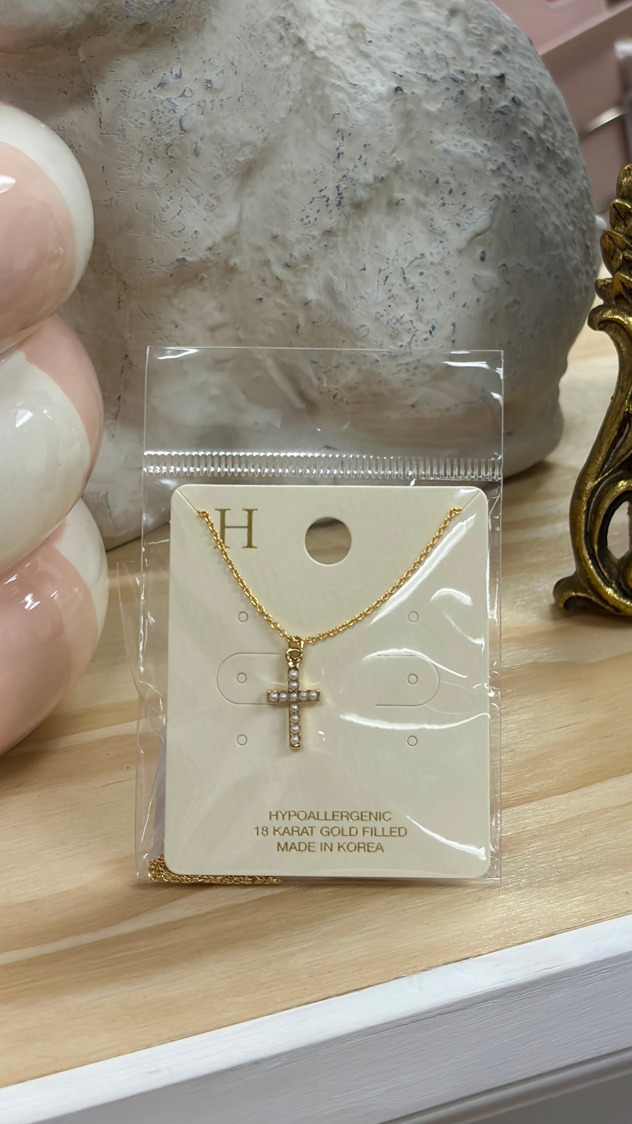 Harper Pearl Cross Necklace