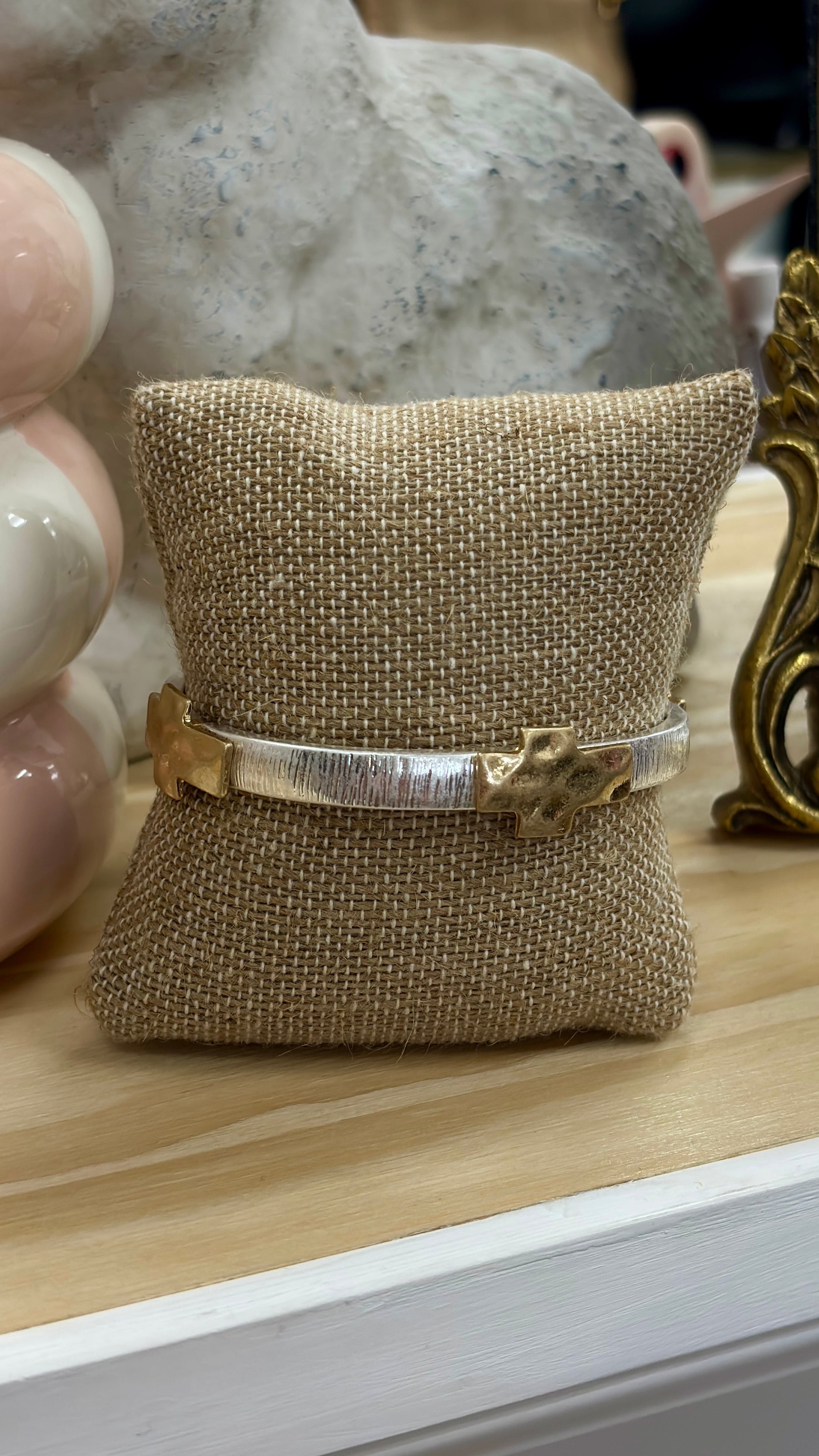 Gold w/Silver Cross Bracelet