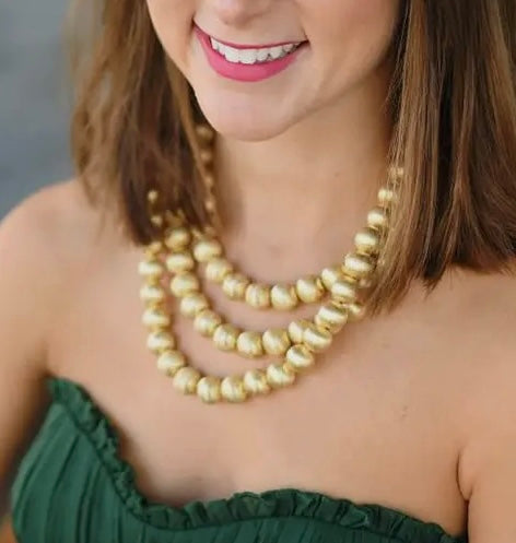 Diana Gold Triple Strand Beaded Necklace