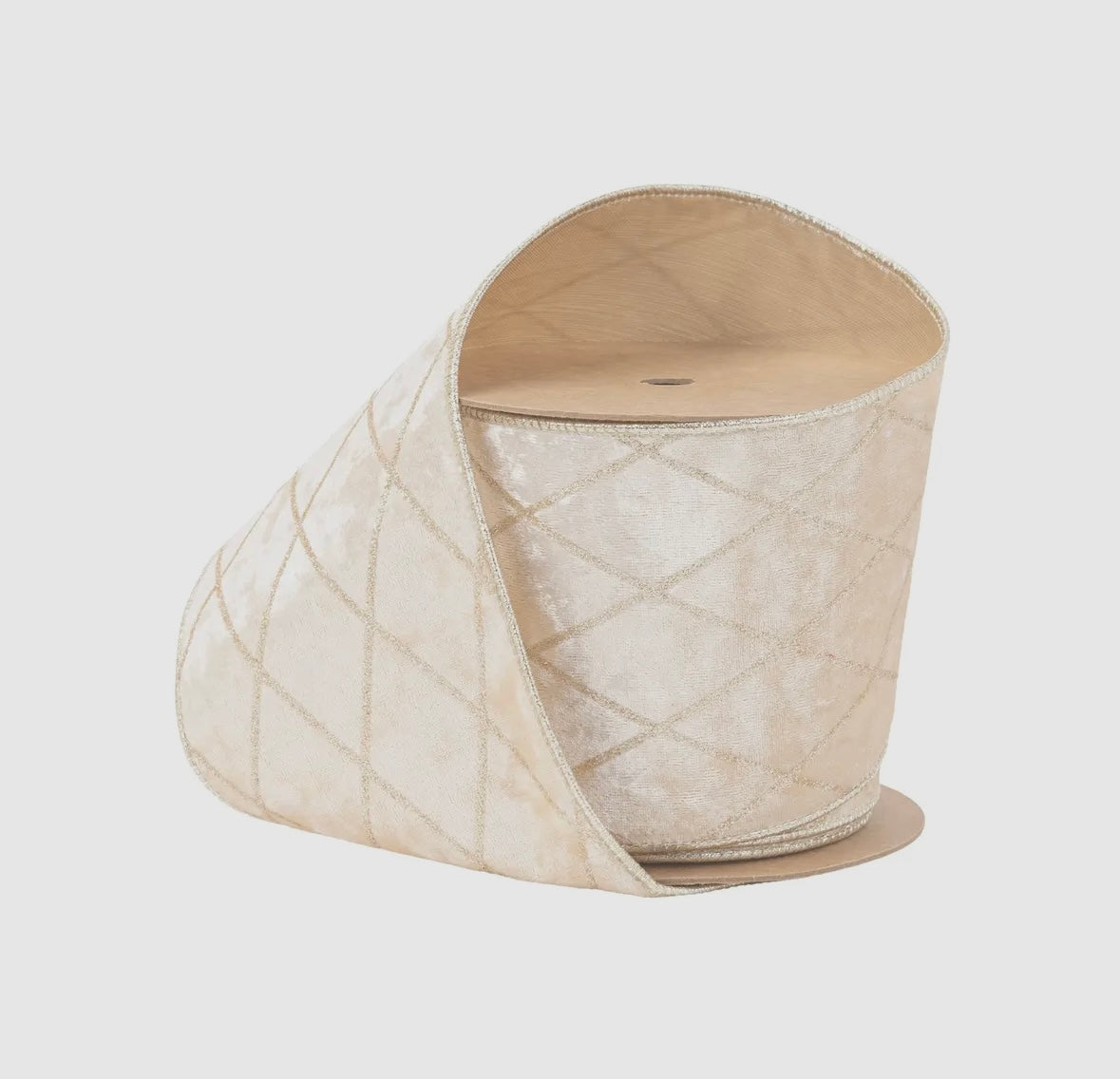 4” Champagne & Glitter Diamond Print Velvet Wired Ribbon