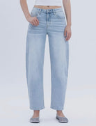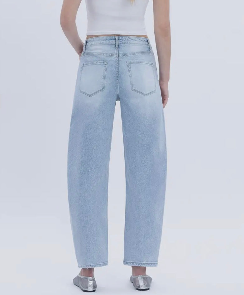 Sadie Super High Rise Light Wash Barrel Leg Denim