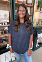 PLUS ACID-WASHED RIBBED SHORT-SLEEVE BOAT-NECK