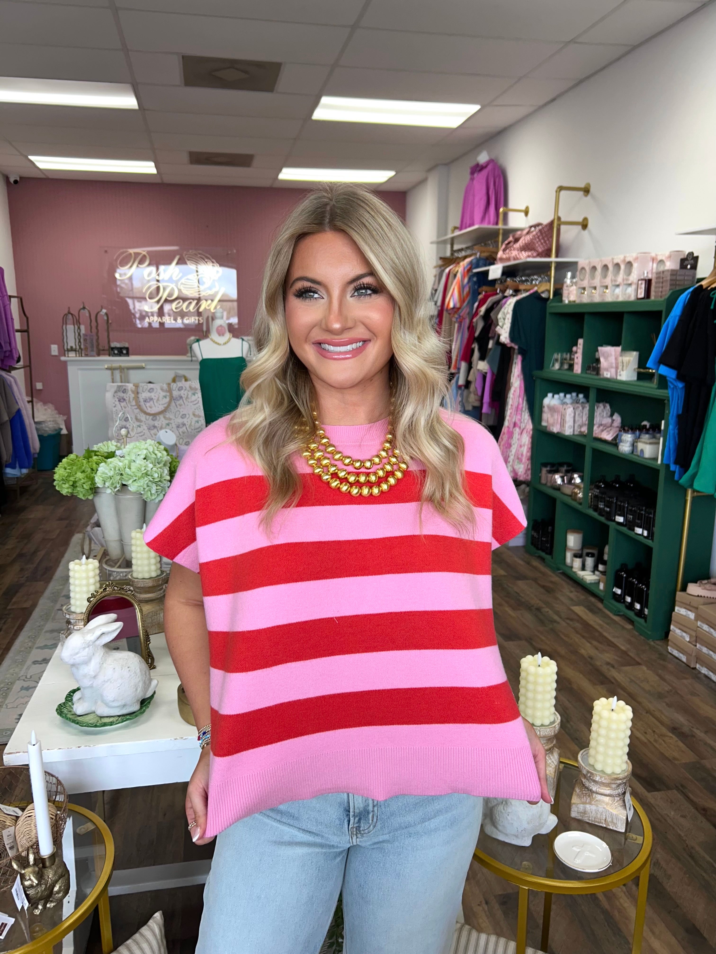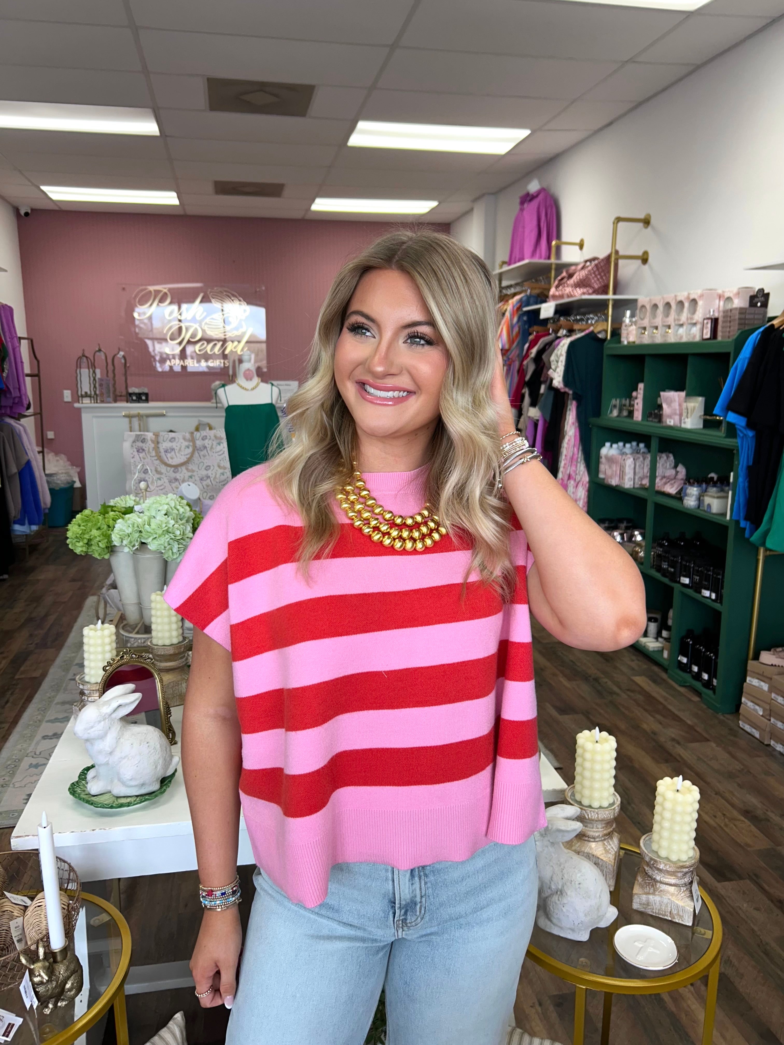Be Mine Red and Pink Striped Top