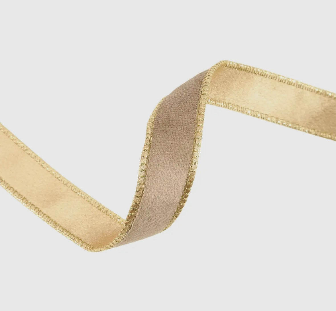 1” Reversible Wired Velvet Ribbon (Latte/Gold)