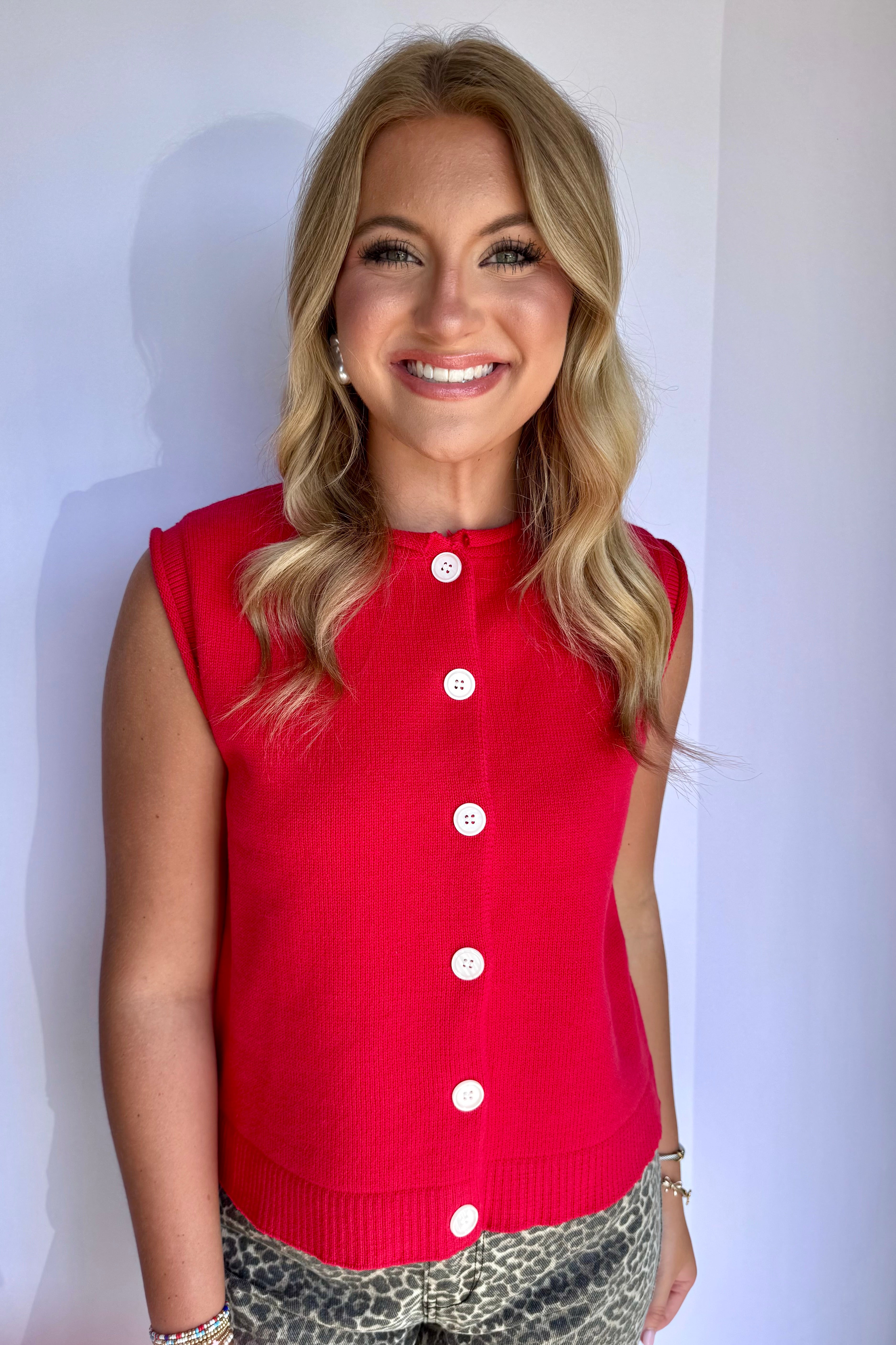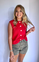 Button Up Sweater Vest- Cherry Red