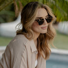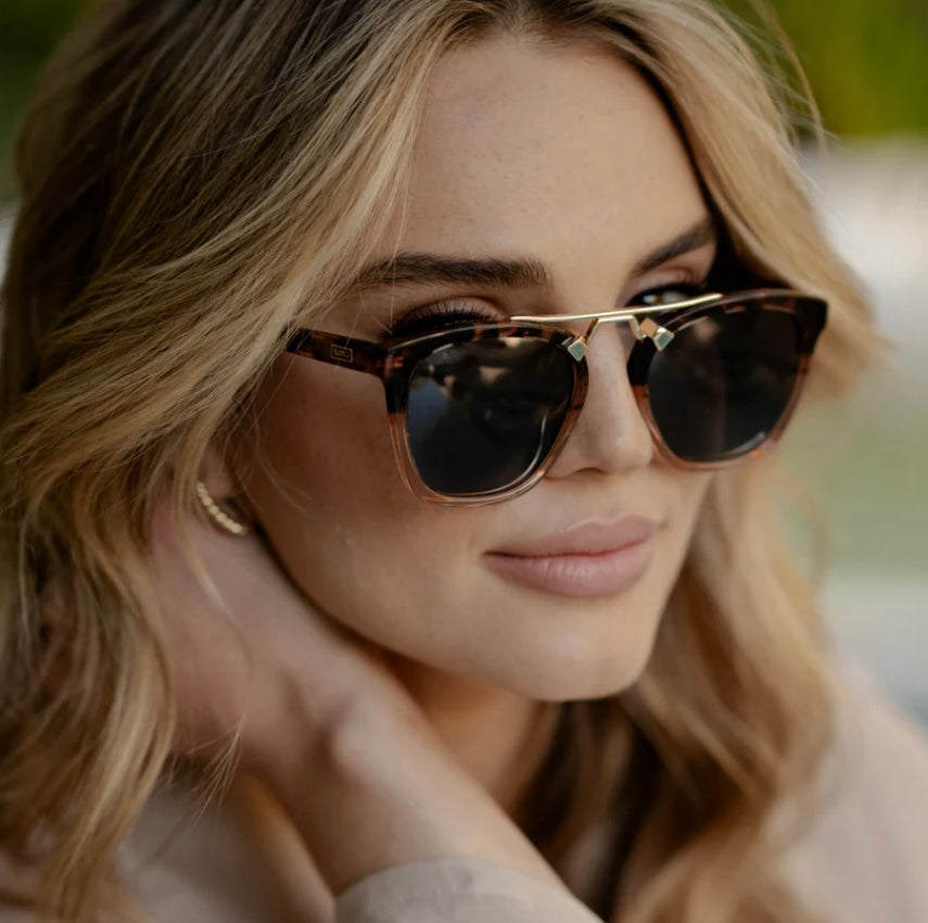 Demi is the definition of eye-catching thanks to an oversized square shape and gold metal floating double bridge design. Its lightweight acetate frame and polarized, 100% UV protection lenses provide practicality to these elevated glam shades.