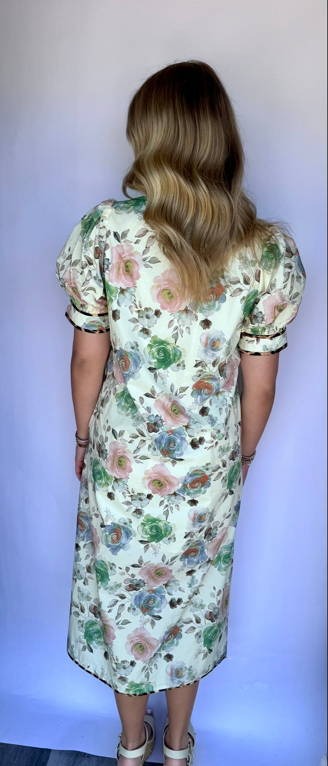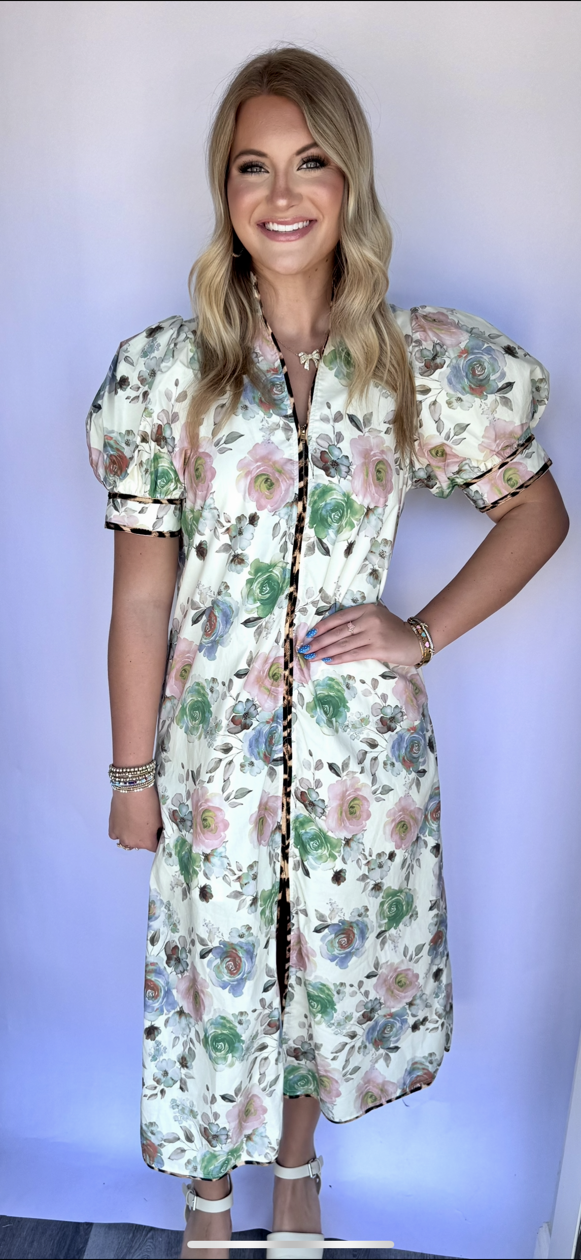 Floral & Cheetah Print Detailed Midi Dress
