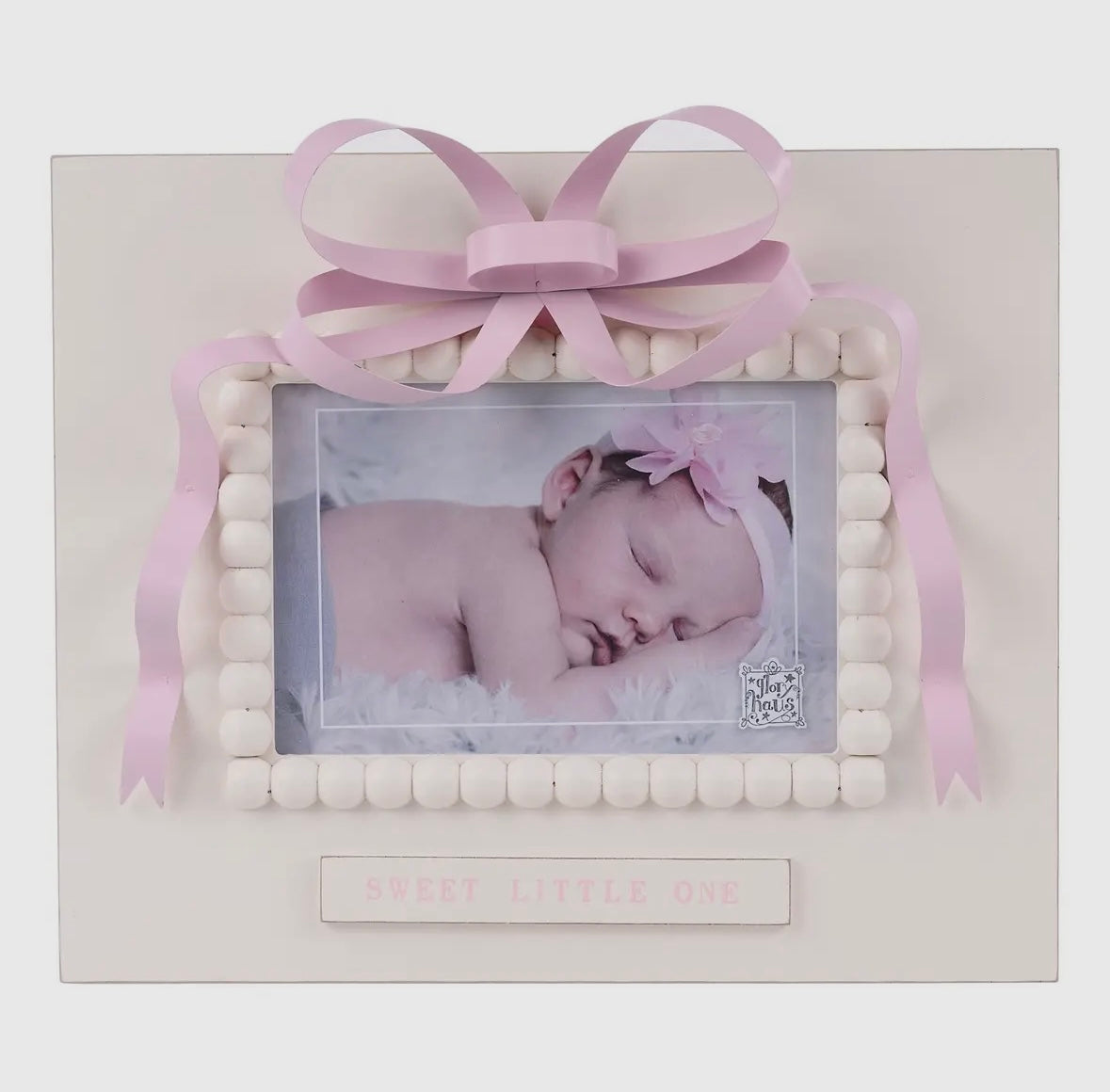 Featuring a soft, delicate color palette and a charming bow accent, this frame is perfect for displaying newborn photos, milestones, or a favorite baby snapshot. Ideal for nurseries, dressers, or as a heartfelt gift, it adds a sweet and feminine touch to any space. A treasured keepsake for new parents, baby showers, or anyone welcoming a sweet little girl into their lives.